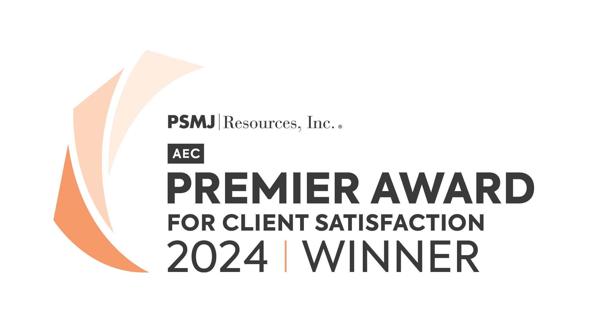 PSMJ Resources, Inc. has announced the winners of the 2024 Premier Award for Client Satisfaction, which honors architecture and engineering firms that deliver a truly exceptional client experience. This award is the only designation in the industry that highlights firms’ commitment to client experience. The award calculation looks at key metrics for client satisfaction that are highly correlated with sustained growth and success as an organization.